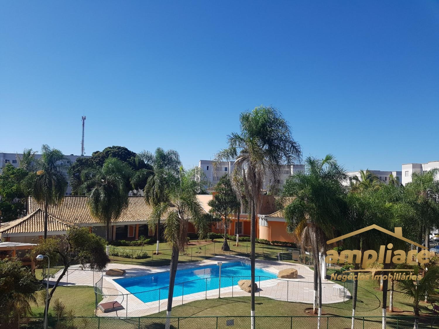 Vista de frente para a piscina, garantindo uma vista livre e agradável.