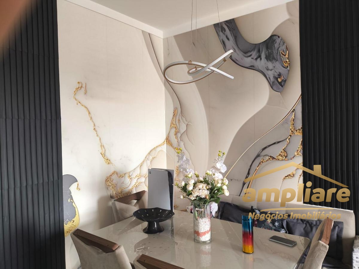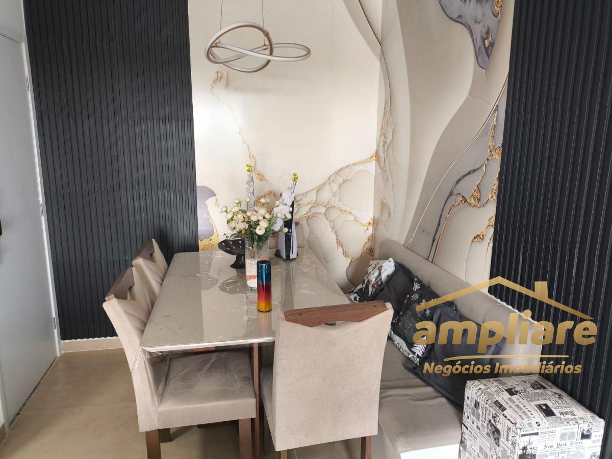 O apartamento possui móveis planejados na cozinha e no dormitório, além de acabamentos personalizados como pia em porcelanato sob medida na cozinha e banheiro. A sala é aconchegante, com lustre, iluminação em LED, ventiladores de teto e sofá em canto alemão. A varanda gourmet conta com pia e iluminação em LED, ideal para momentos de lazer.