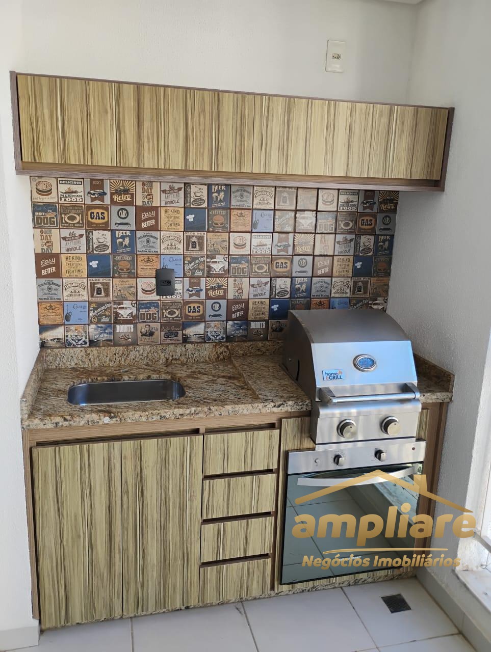 O imóvel conta com 3 dormitórios, sendo 1 suíte, todos com armários planejados. A cozinha é equipada com cooktop, coifa e aquecedor a gás, além de banheiros com box e luminárias já instaladas. Possui ainda churrasqueira, ideal para momentos de lazer.