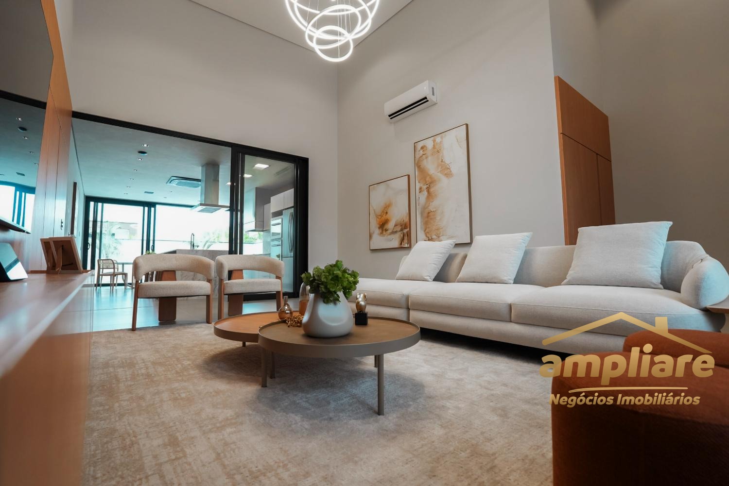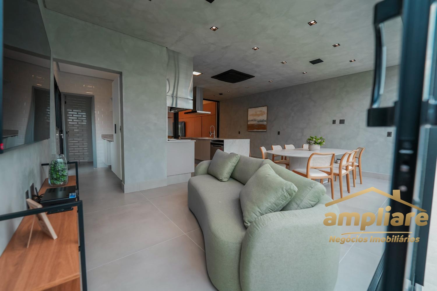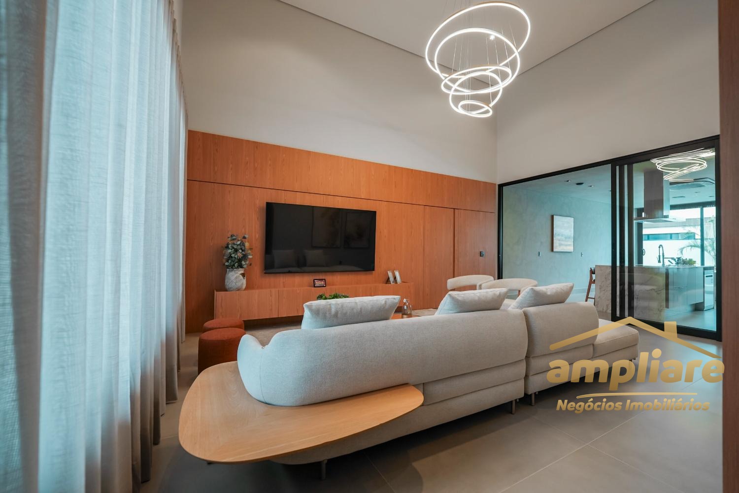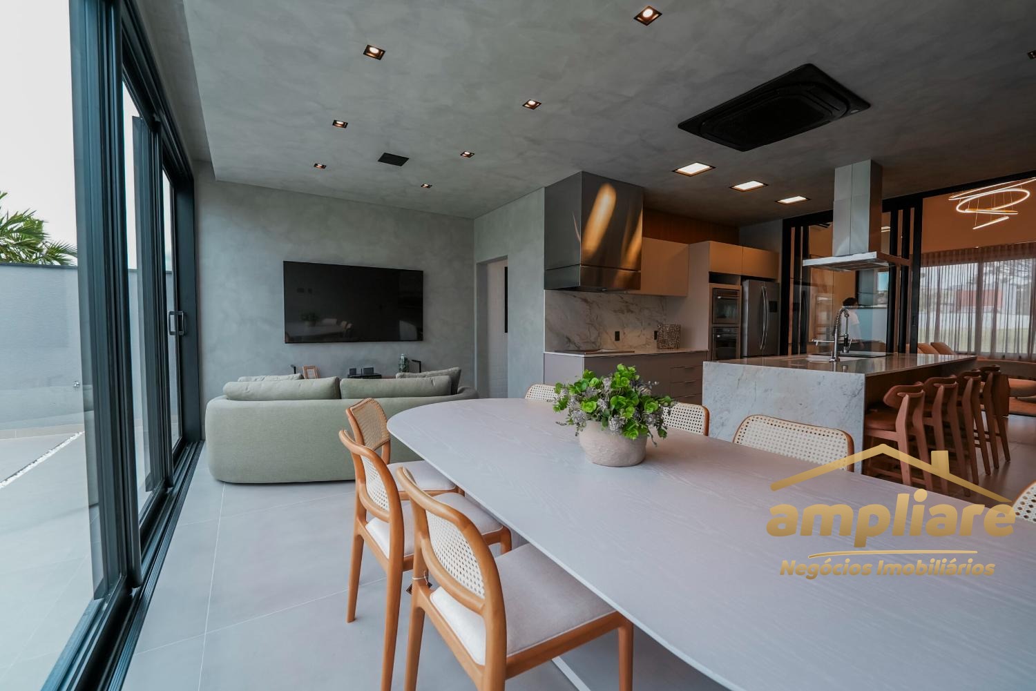 O imóvel conta com ampla sala para dois ambientes integrada à cozinha e ao espaço gourmet, criando um ambiente moderno e acolhedor. Possui despensa, lavabo, escritório, despejo e banheiro externo, garantindo praticidade e excelente organização.