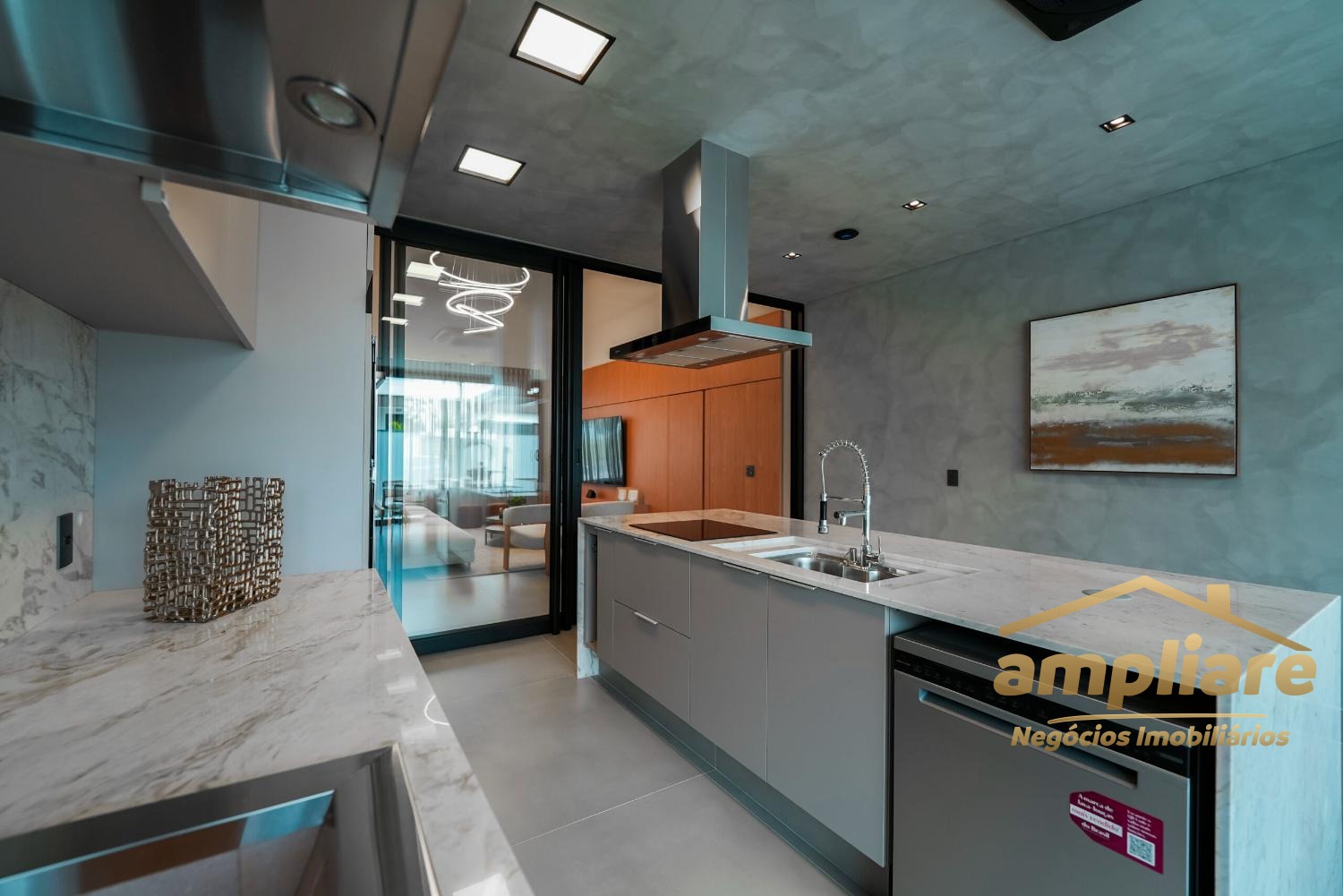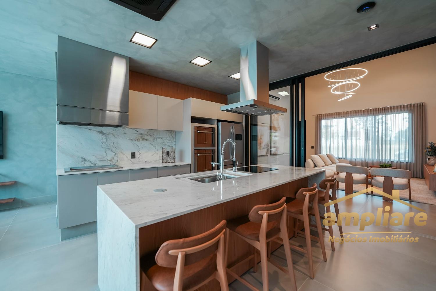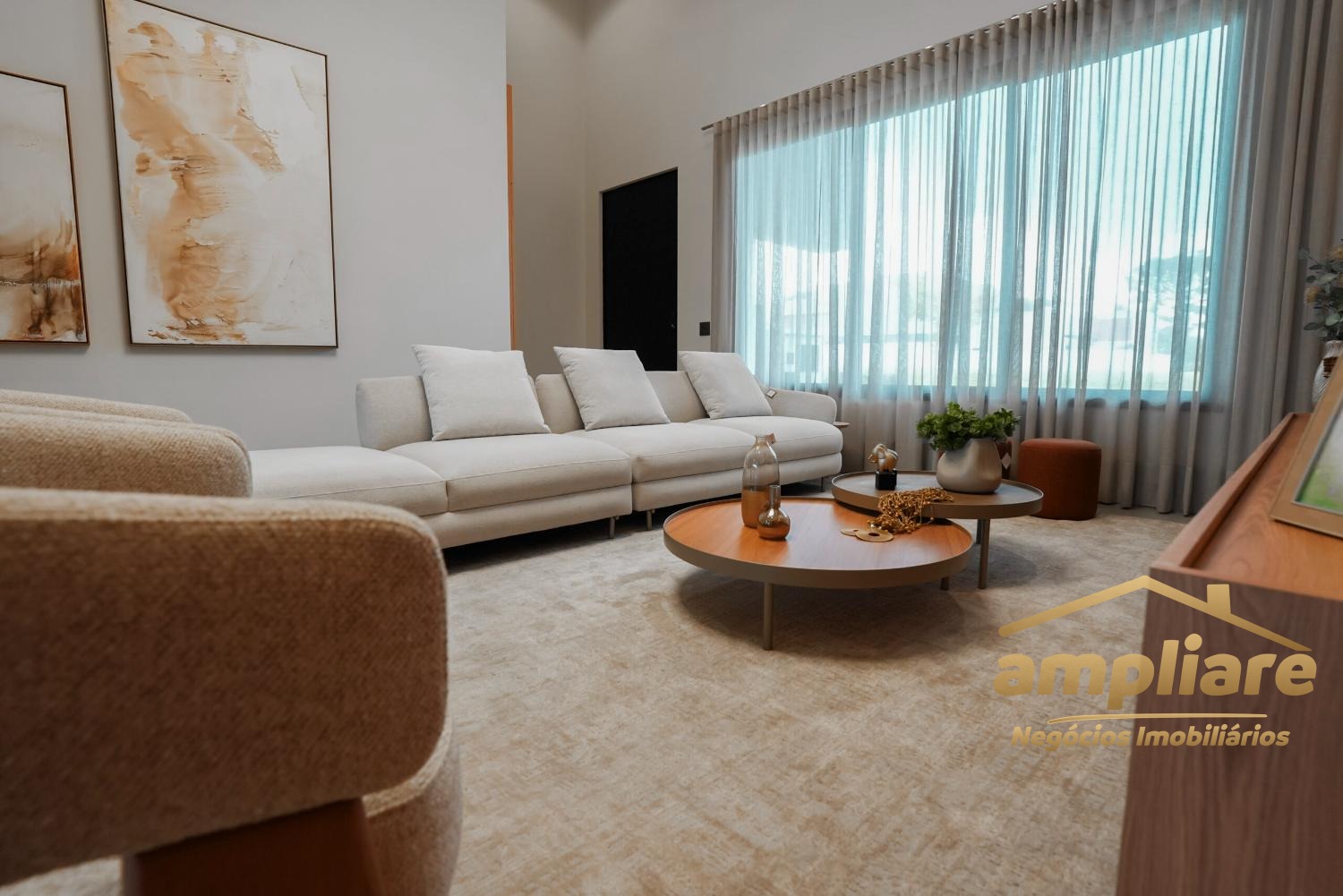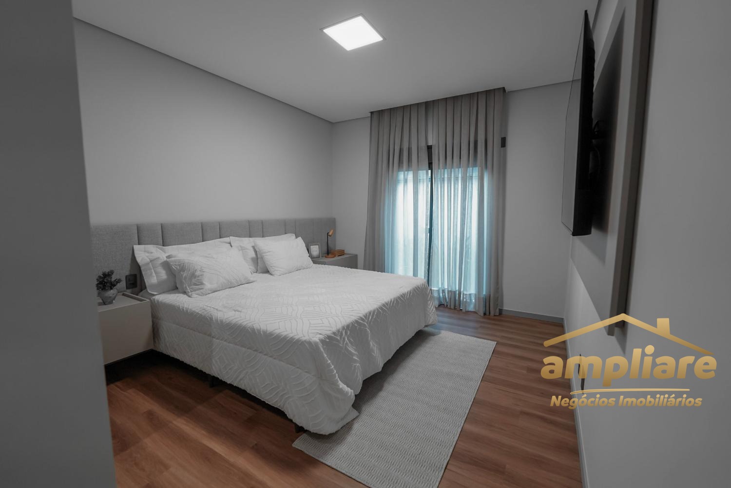 O imóvel conta com ampla sala para dois ambientes integrada à cozinha e ao espaço gourmet, criando um ambiente moderno e acolhedor. Possui despensa, lavabo, escritório, despejo e banheiro externo, garantindo praticidade e excelente organização.