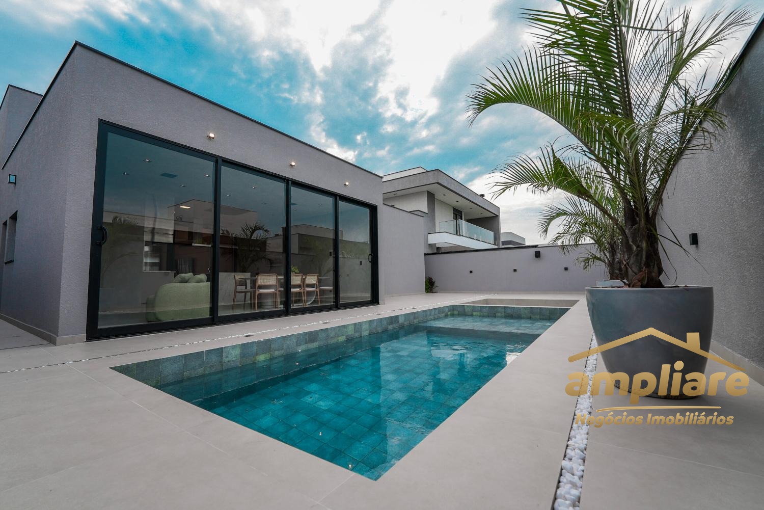 A área externa foi projetada para o lazer e convivência, com amplo espaço gourmet mobiliado, decorado e equipado com churrasqueira e sistema de som automatizado e integrado. O quintal conta com paisagismo completo, piscina aquecida com prainha e um elegante espaço com fire place, ideal para momentos de relaxamento.