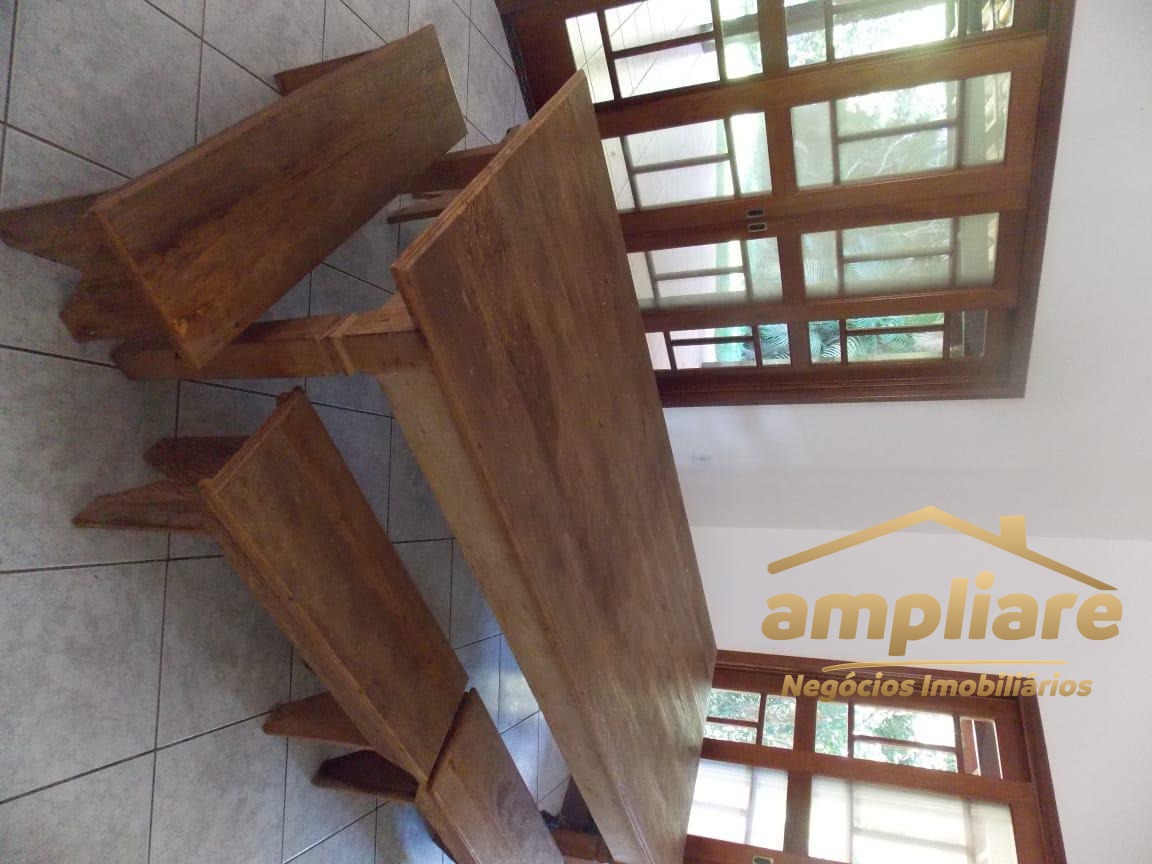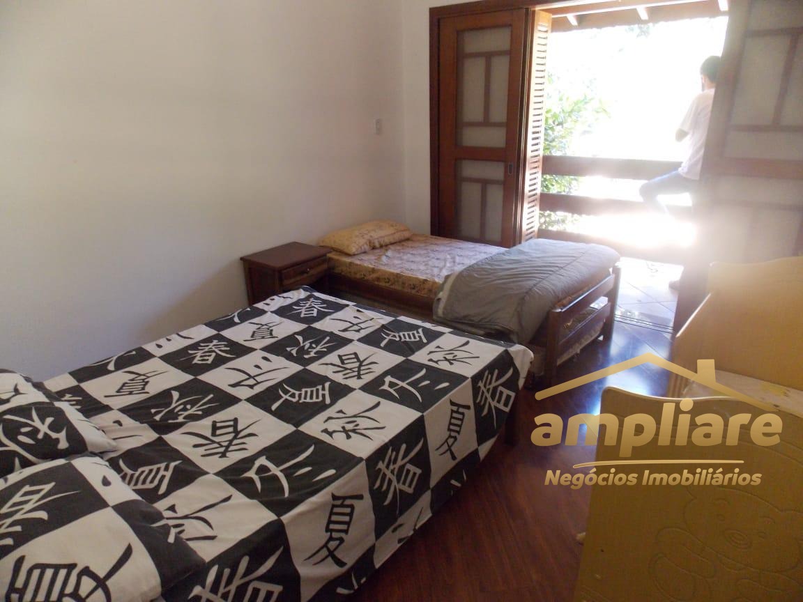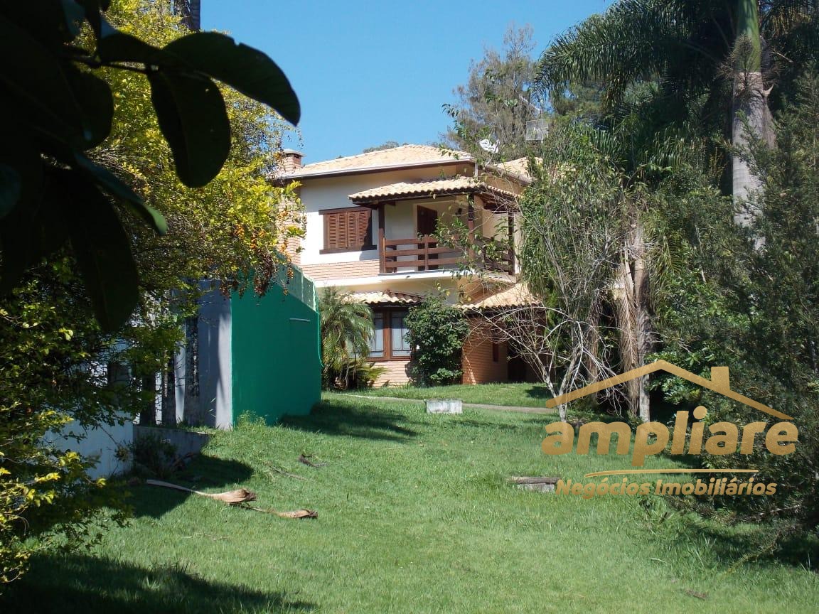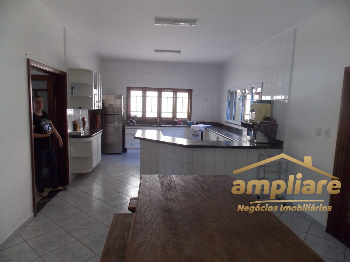 No pavimento superior, o imóvel conta com 5 dormitórios, sendo 3 suítes, todos com acesso à sacada, proporcionando excelente iluminação natural e ventilação. No pavimento térreo, possui sala de estar com lareira, adega sob a escada, sala de TV fechada e cozinha com copa integrada, com acesso direto à área de churrasqueira, que conta com banheiro de apoio e forno de pizza.