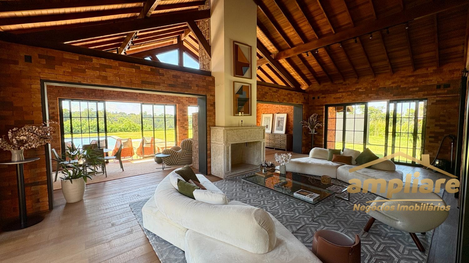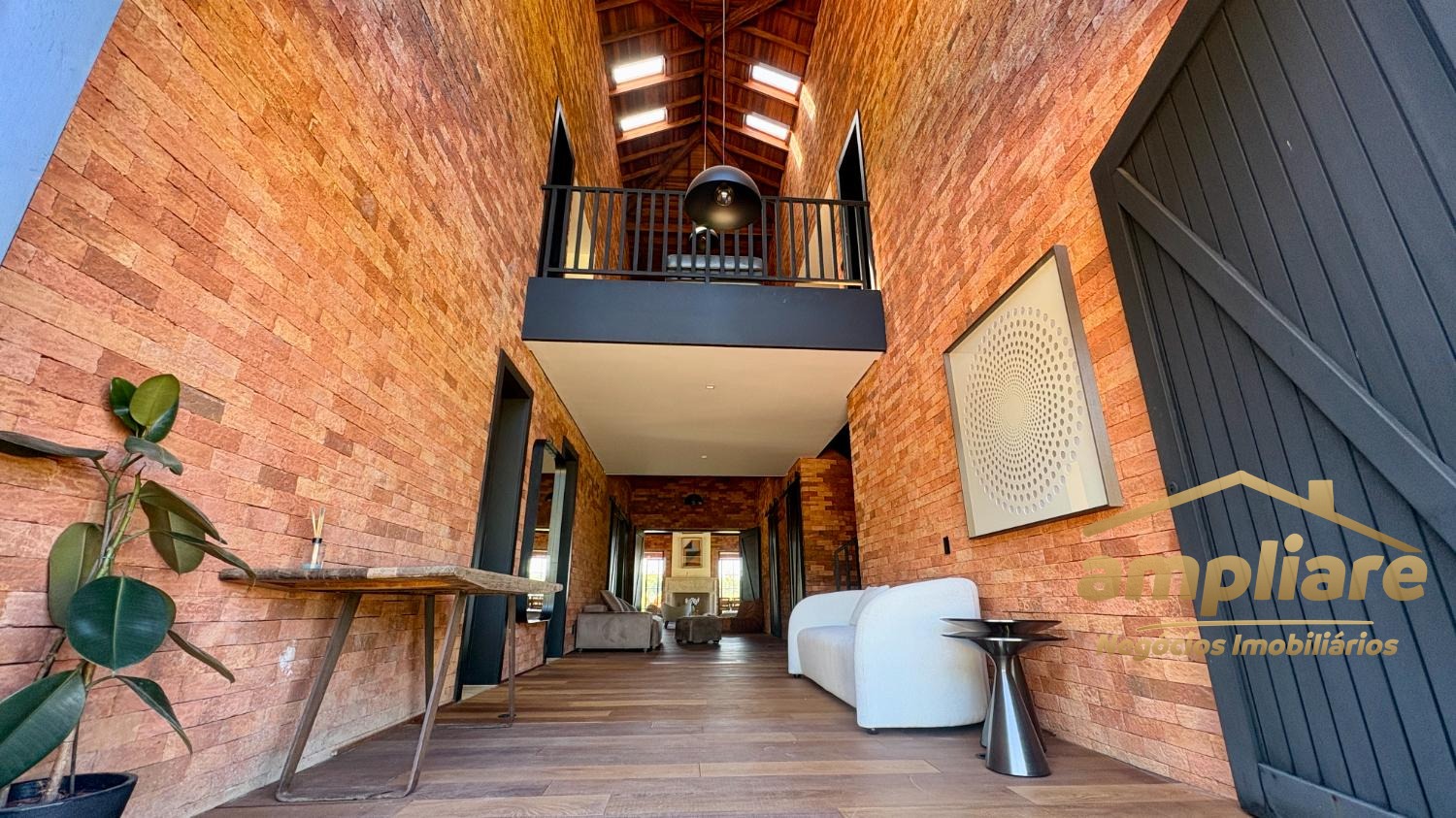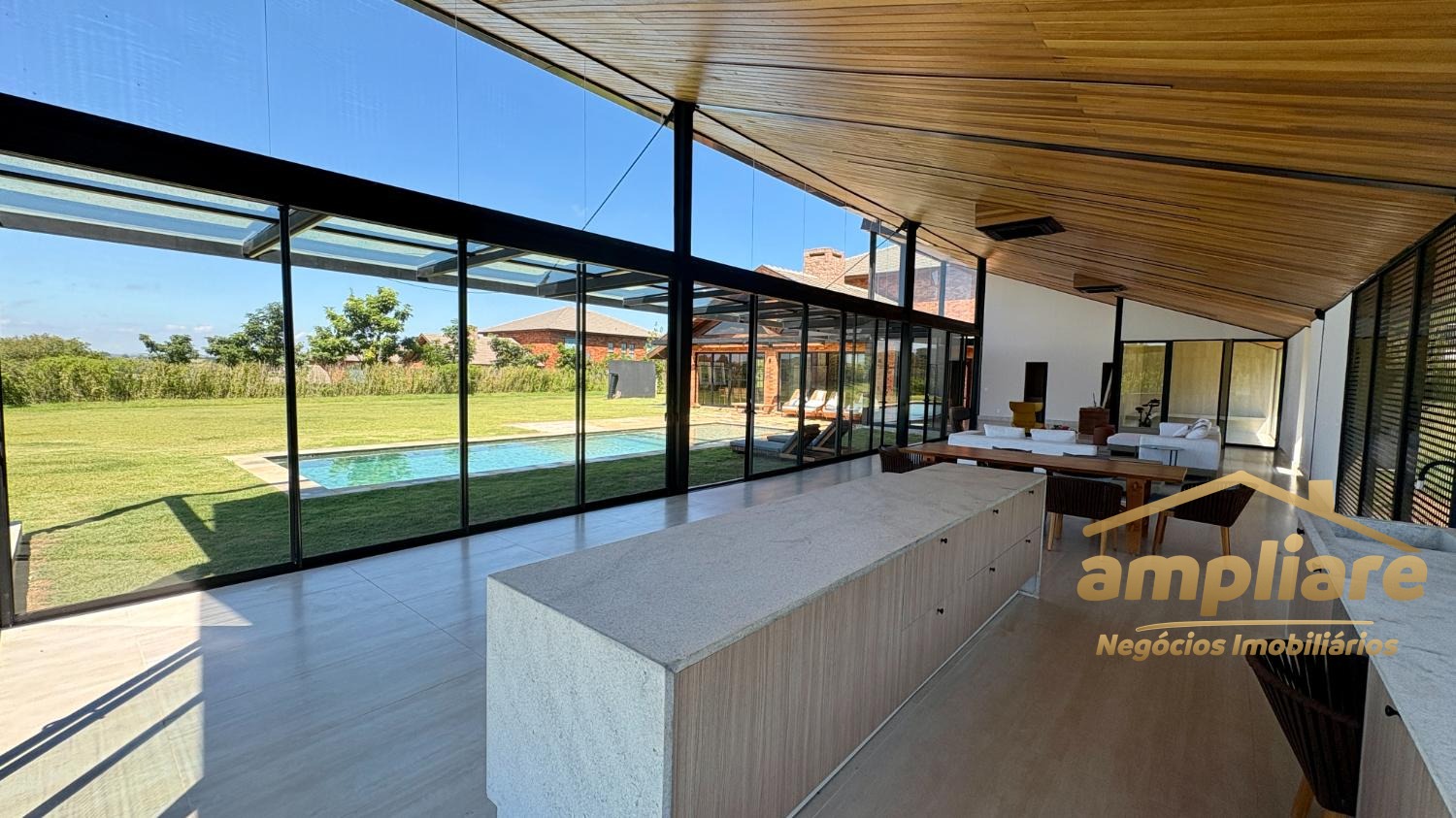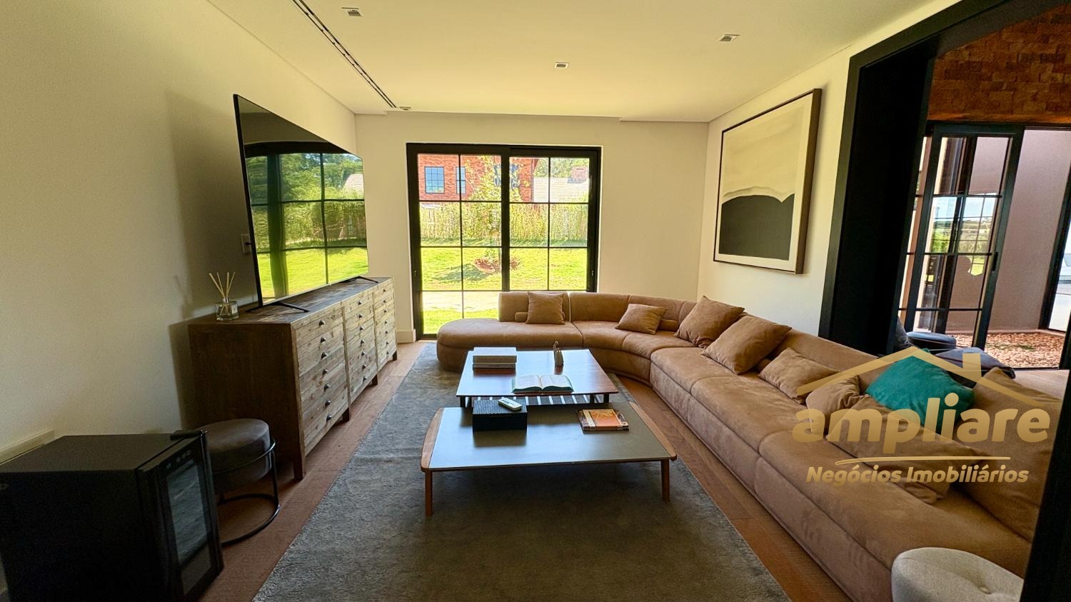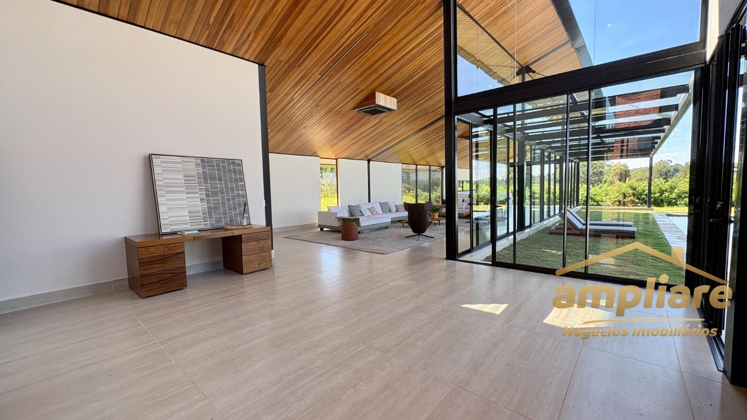 Esta casa impressiona desde a entrada, com pé-direito elevado, acabamentos nobres e ambientes totalmente integrados. A área social é banhada por luz natural, com grandes panos de vidro que proporcionam uma vista espetacular para o verde e para a área de lazer.