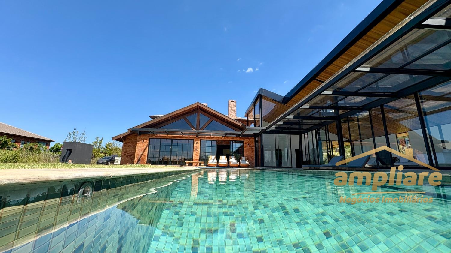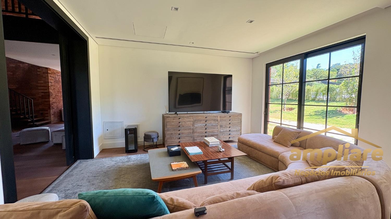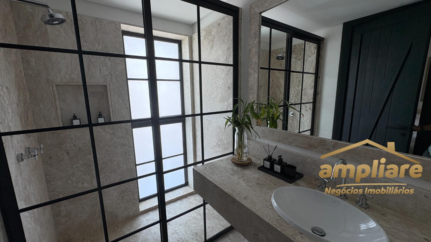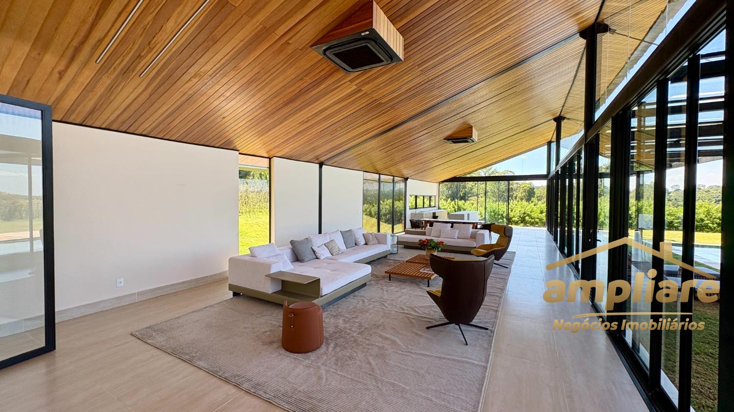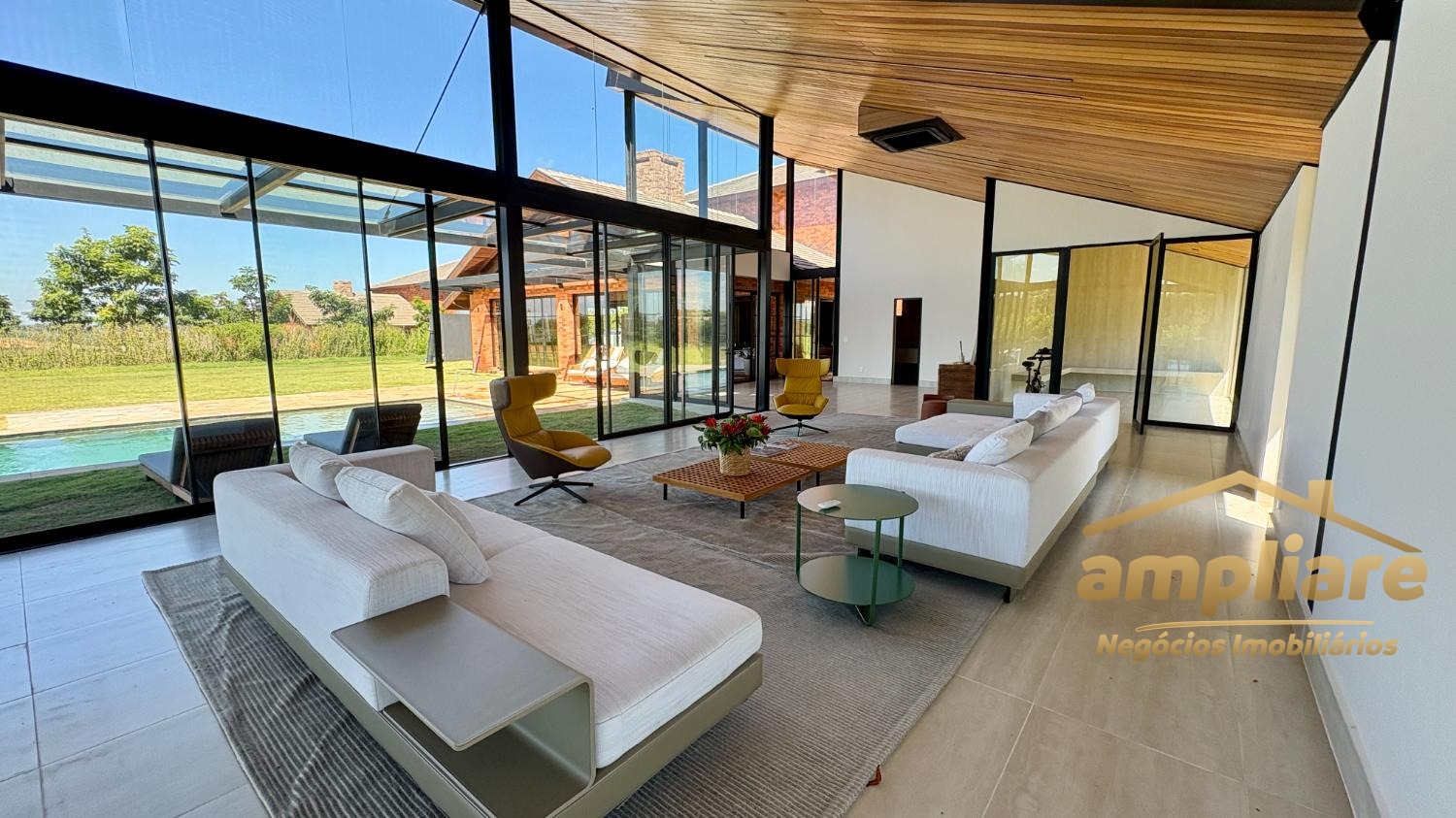 Esta casa impressiona desde a entrada, com pé-direito elevado, acabamentos nobres e ambientes totalmente integrados. A área social é banhada por luz natural, com grandes panos de vidro que proporcionam uma vista espetacular para o verde e para a área de lazer.