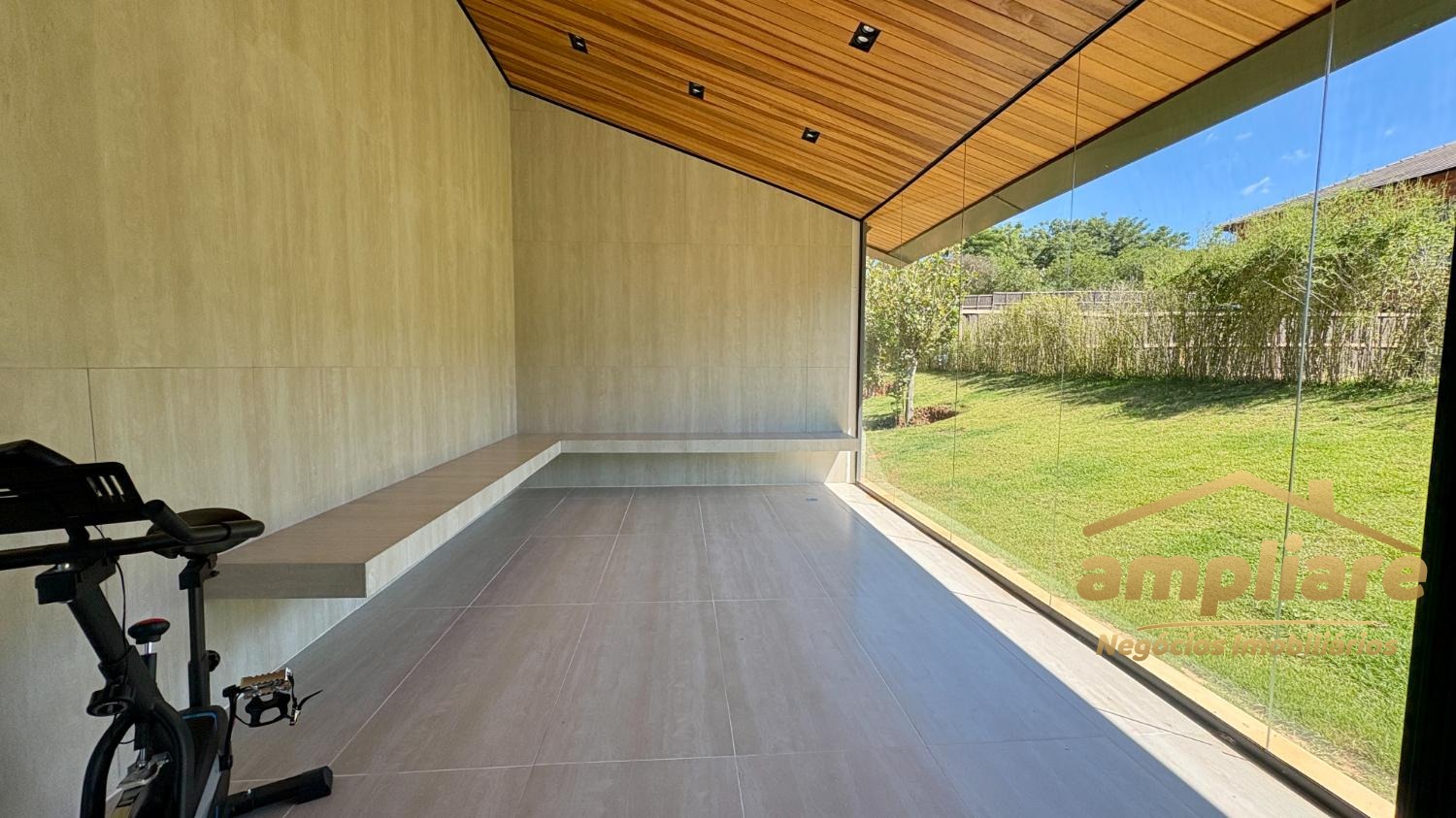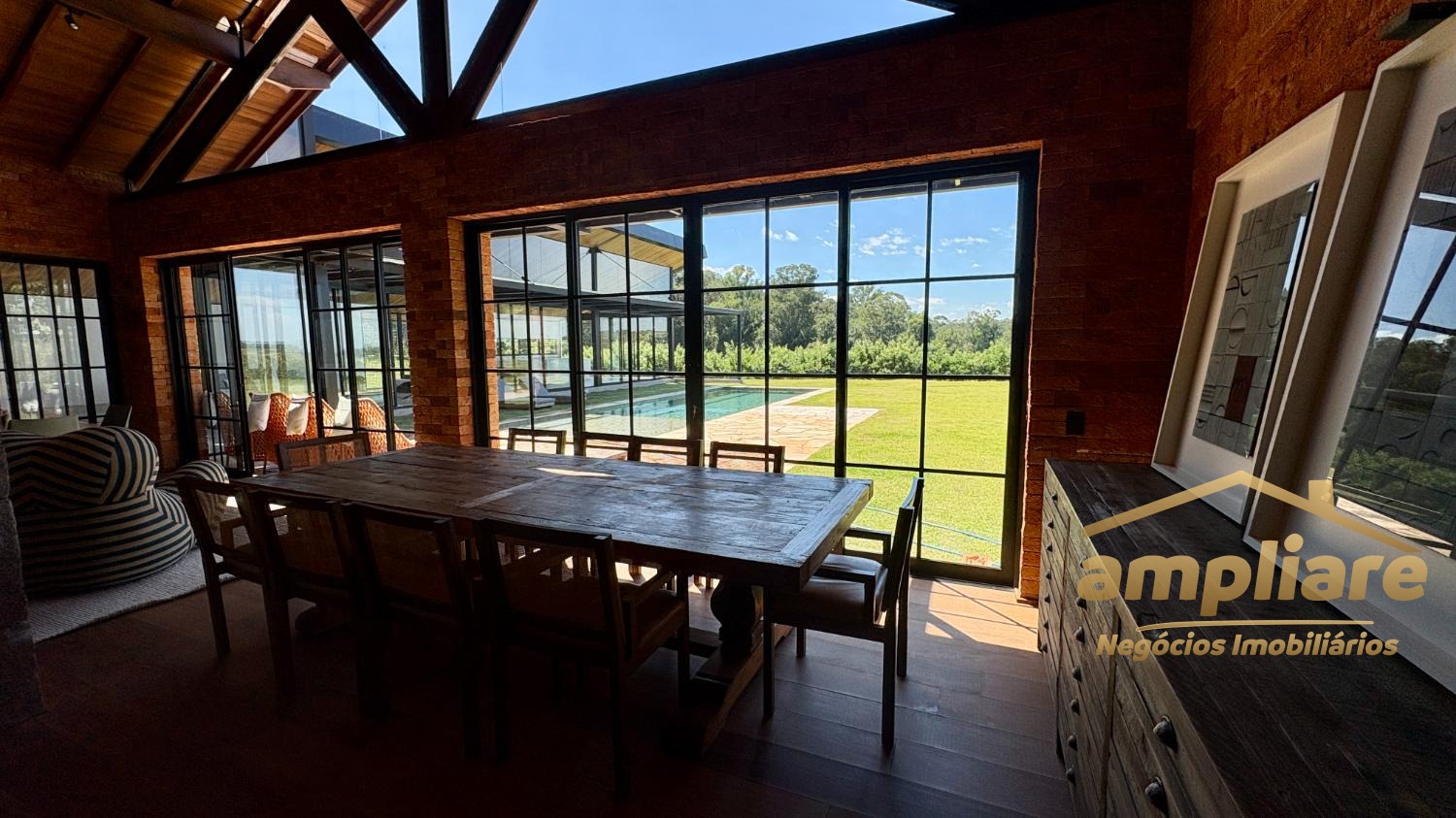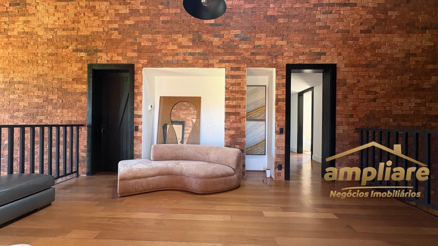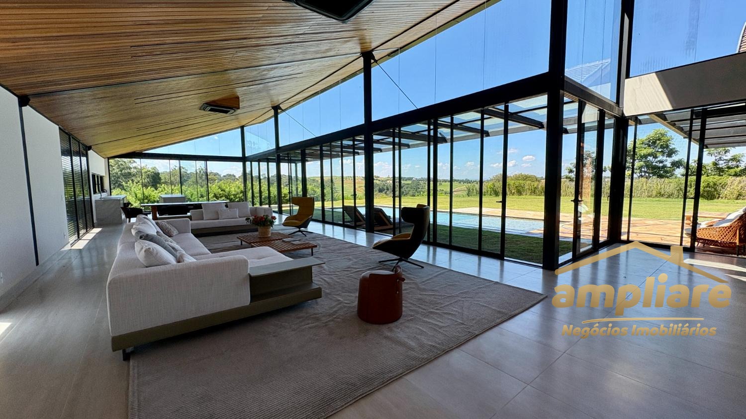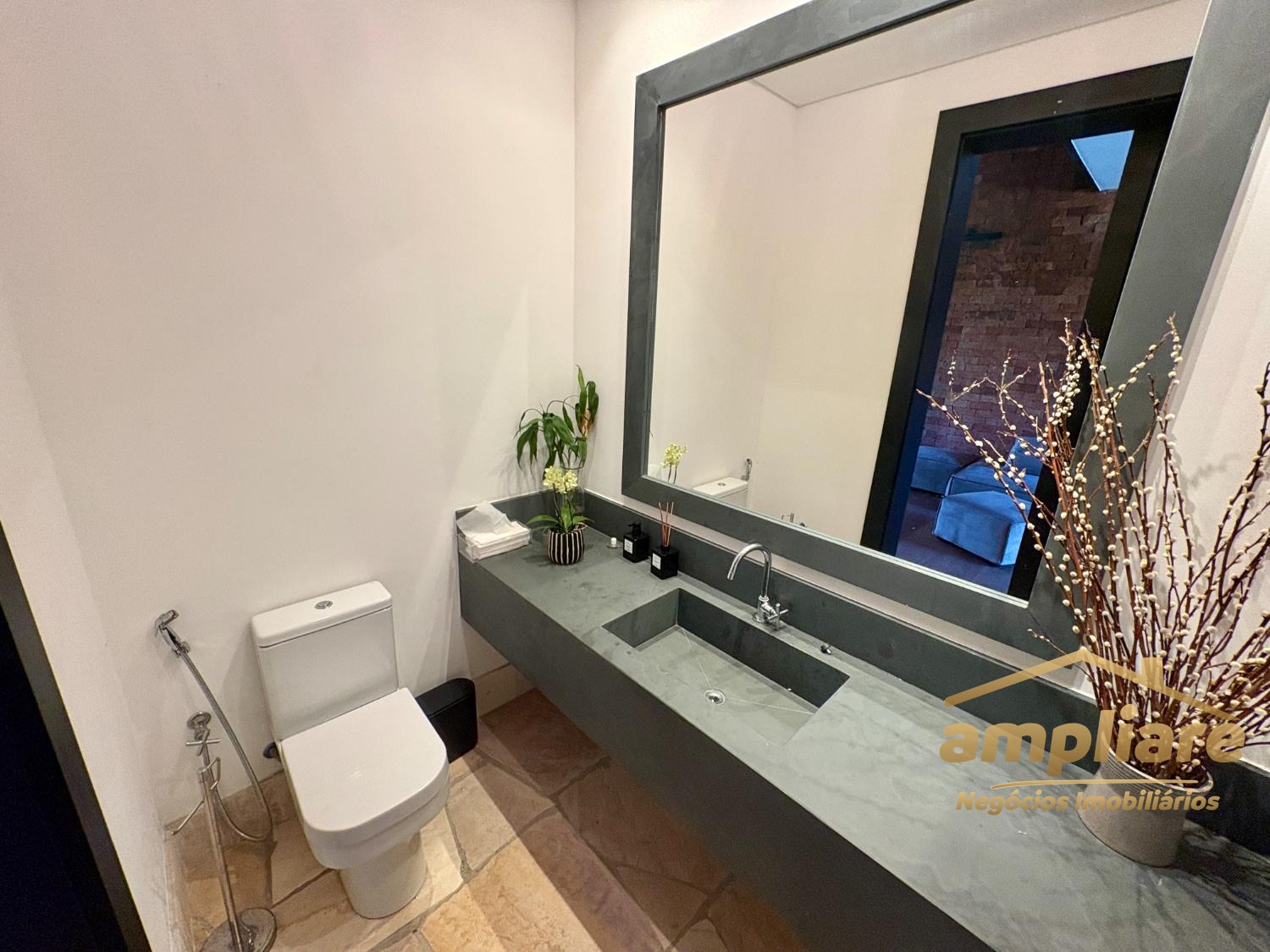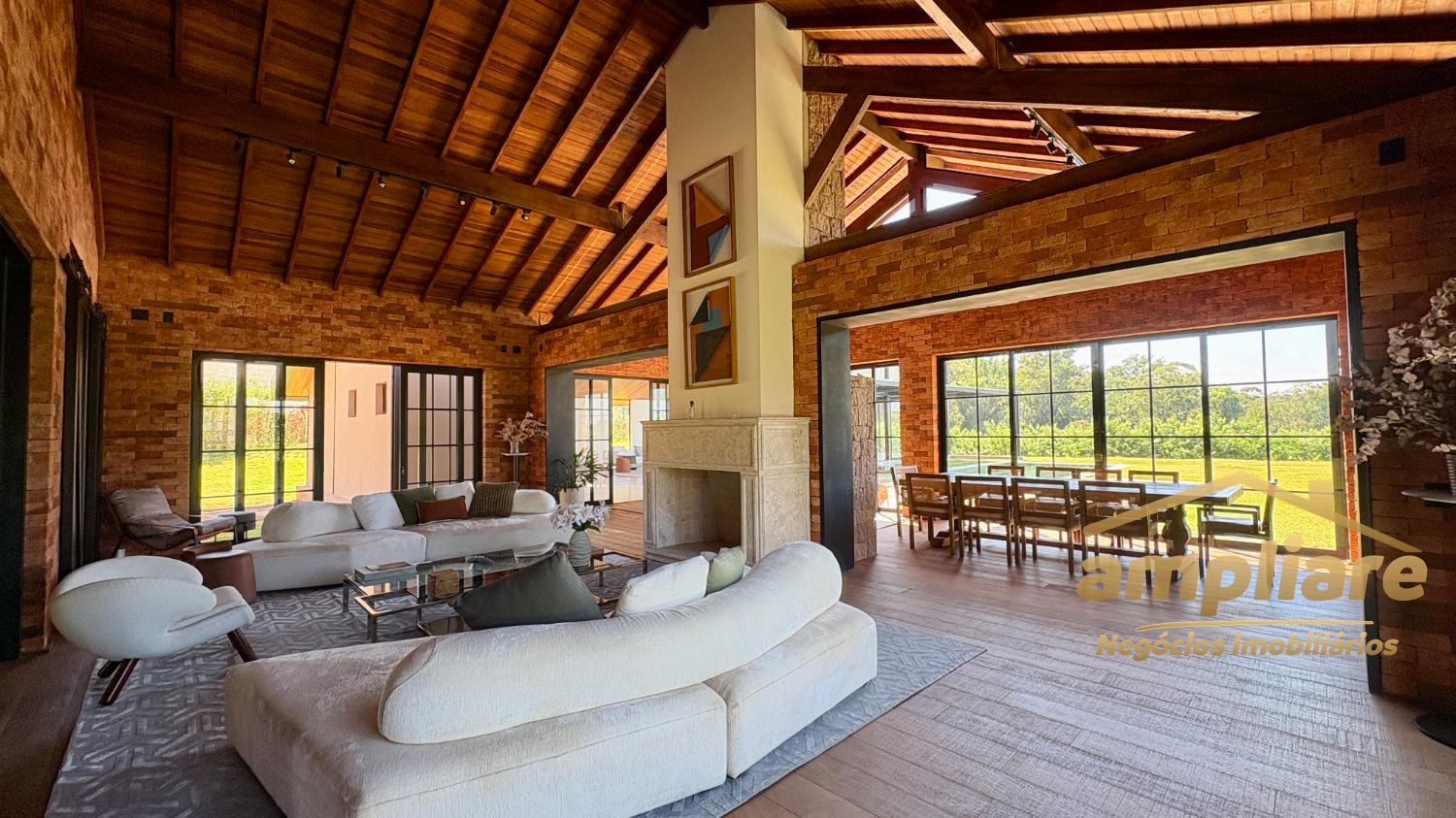 Esta casa impressiona desde a entrada, com pé-direito elevado, acabamentos nobres e ambientes totalmente integrados. A área social é banhada por luz natural, com grandes panos de vidro que proporcionam uma vista espetacular para o verde e para a área de lazer.