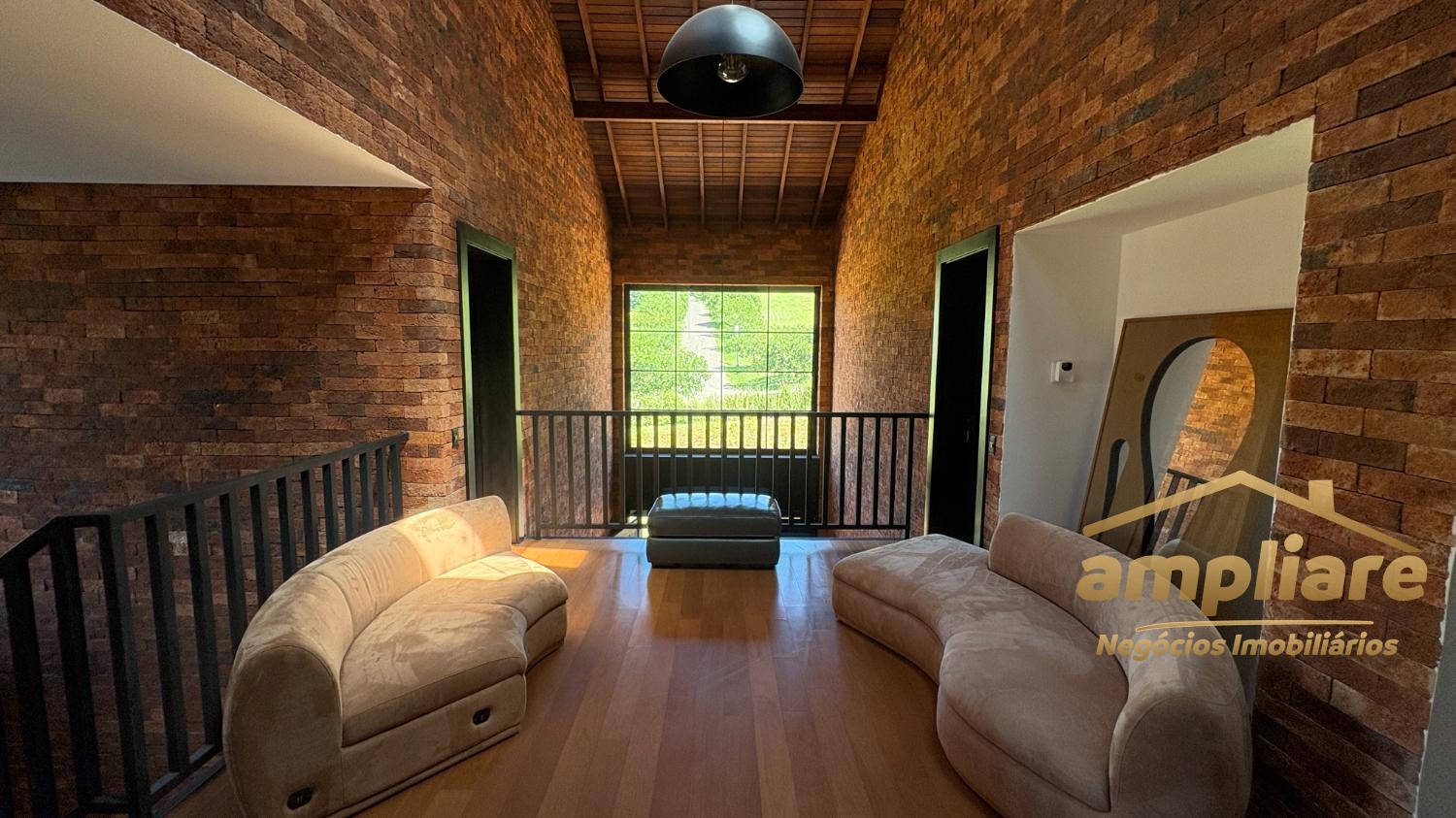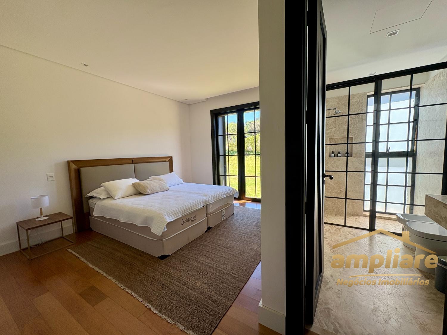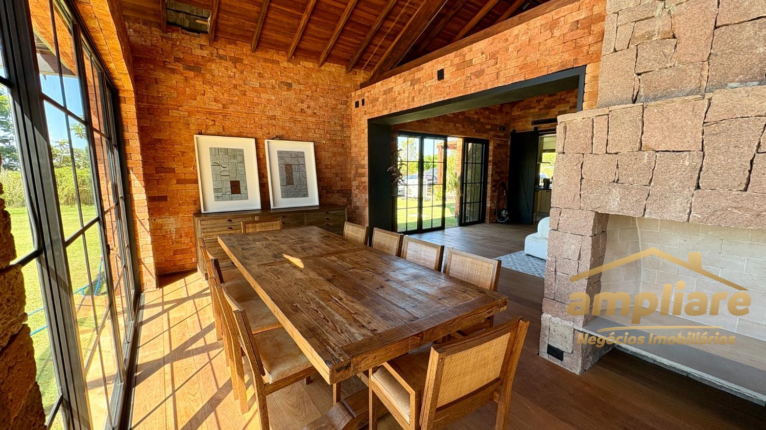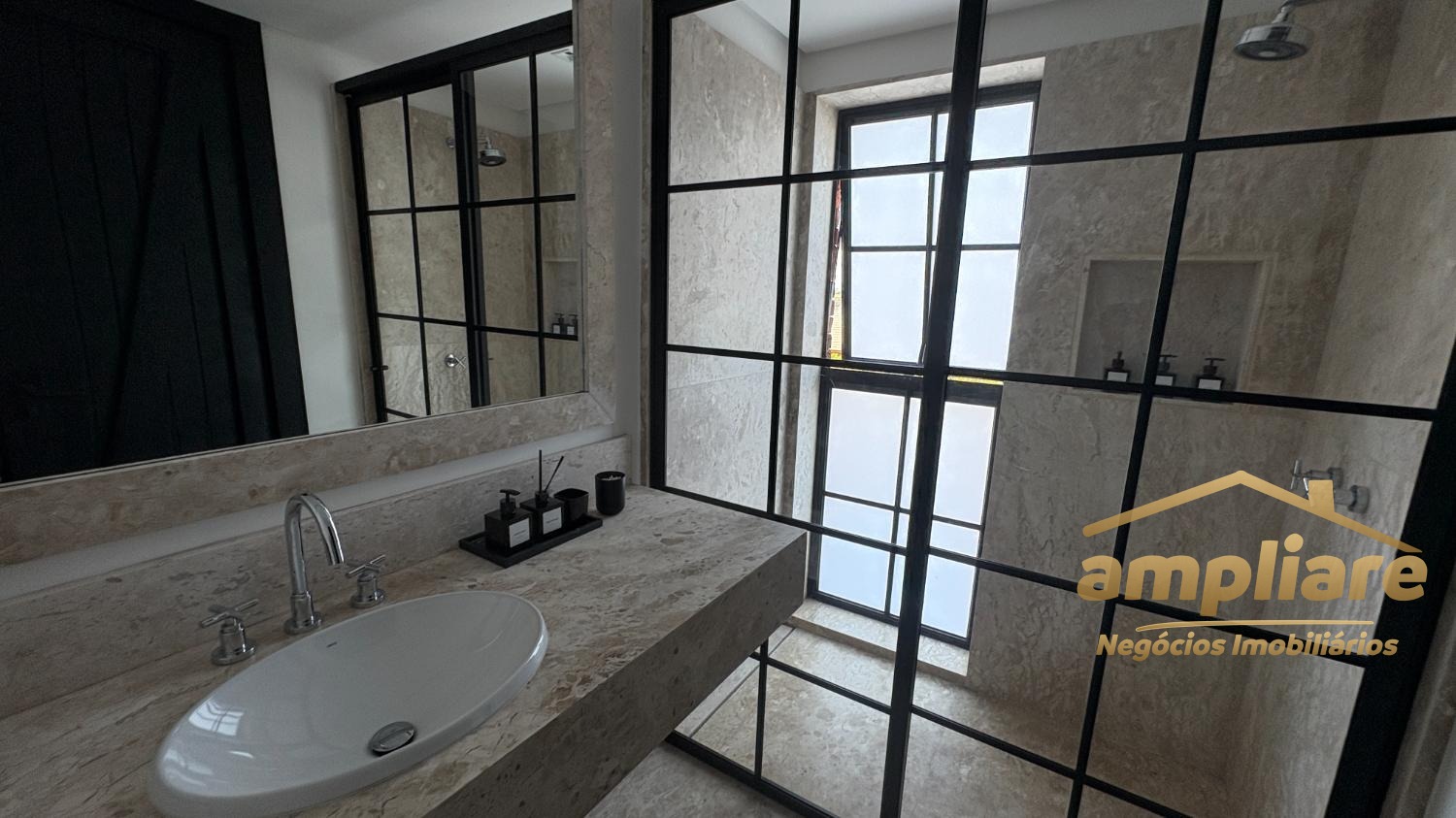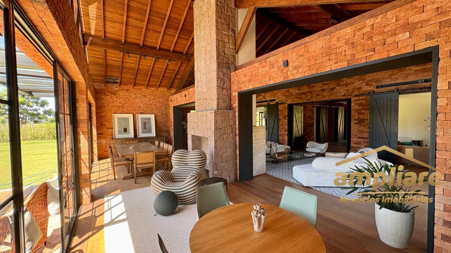 Esta casa impressiona desde a entrada, com pé-direito elevado, acabamentos nobres e ambientes totalmente integrados. A área social é banhada por luz natural, com grandes panos de vidro que proporcionam uma vista espetacular para o verde e para a área de lazer.