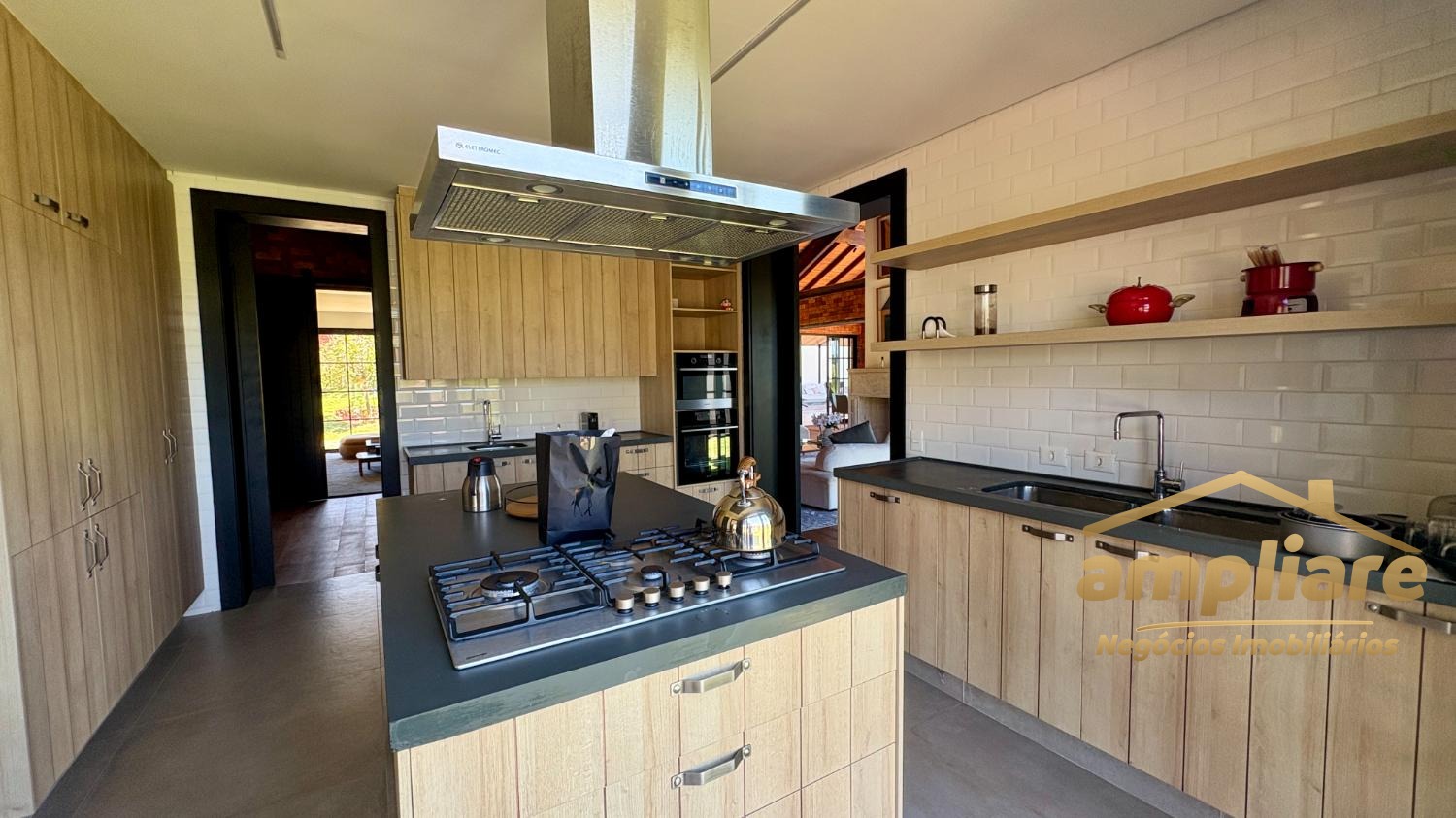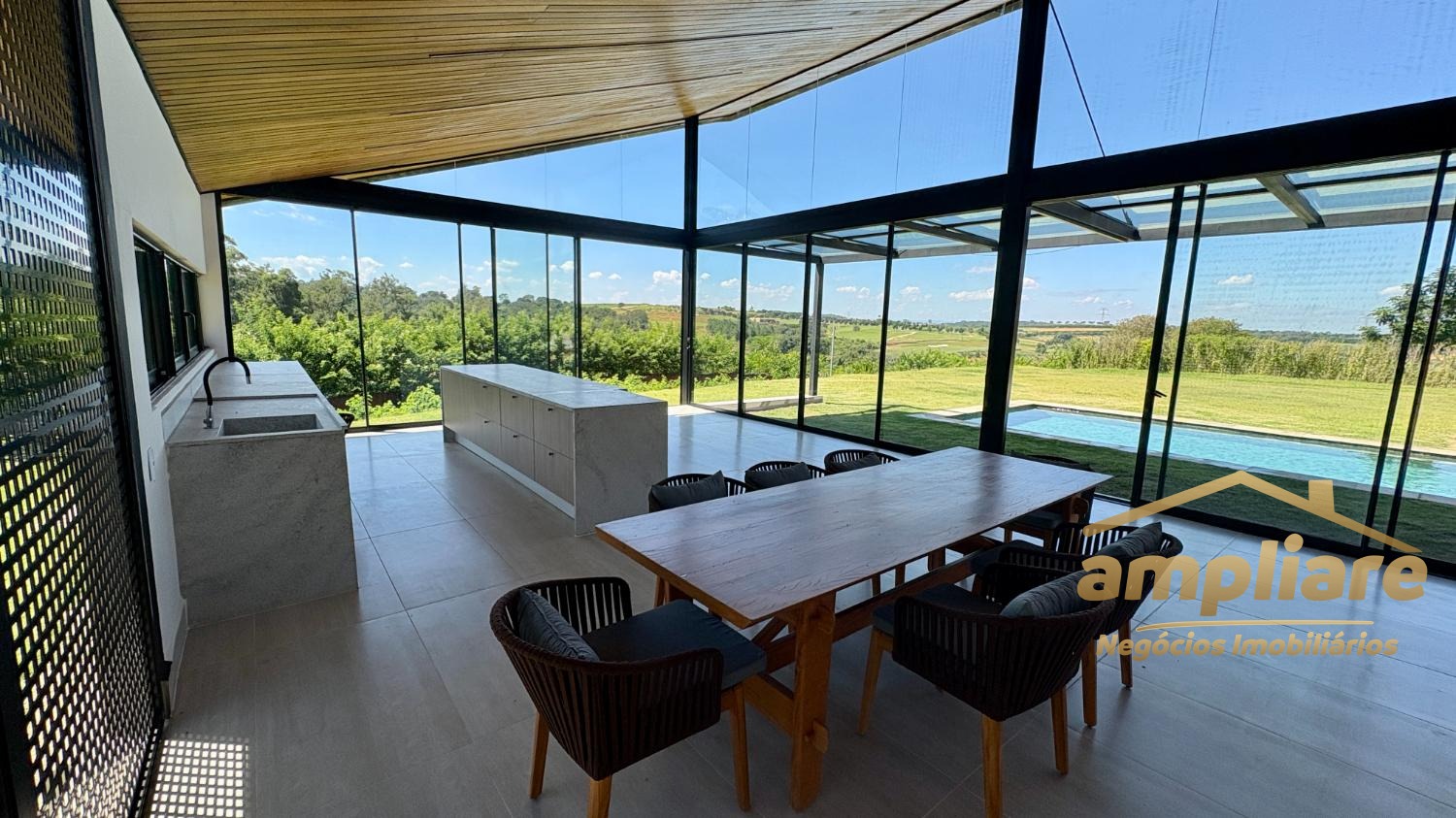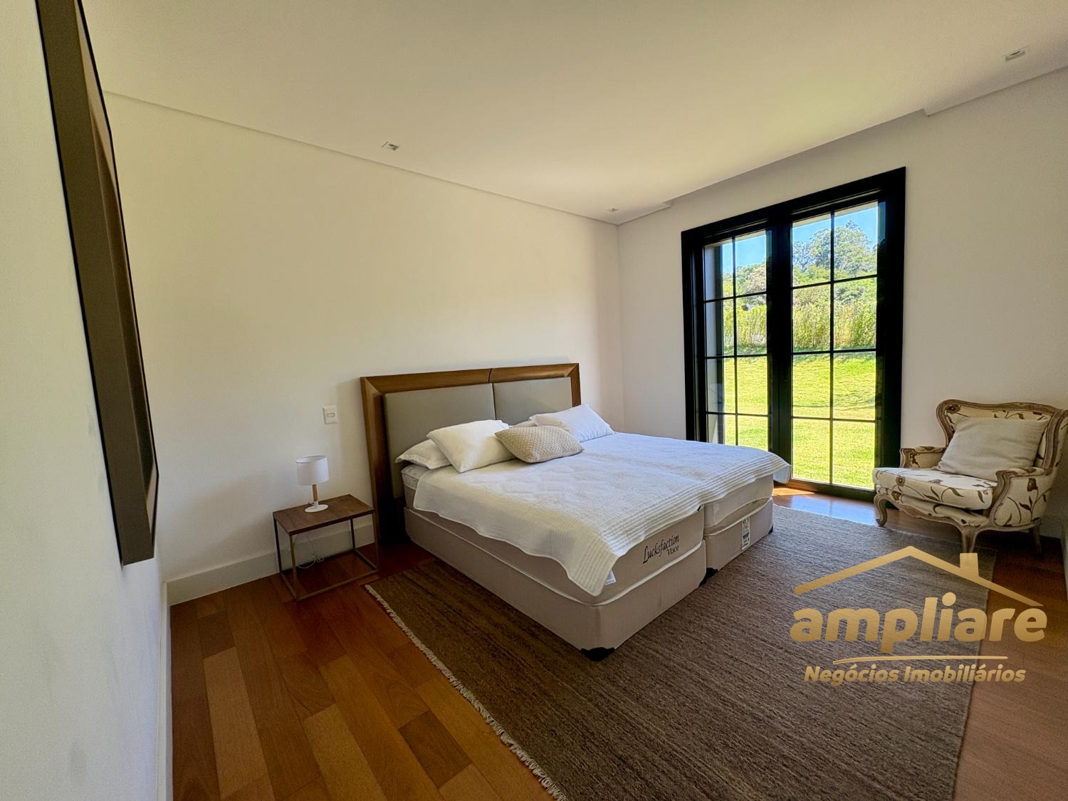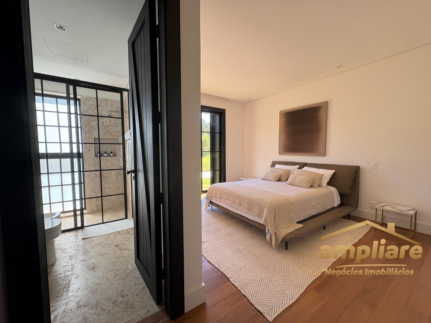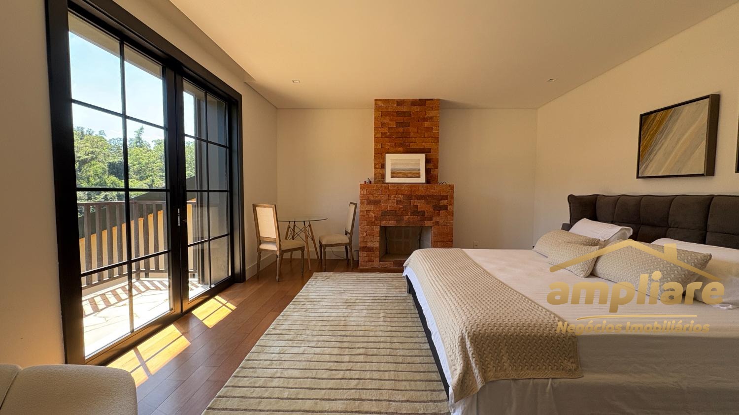 Esta casa impressiona desde a entrada, com pé-direito elevado, acabamentos nobres e ambientes totalmente integrados. A área social é banhada por luz natural, com grandes panos de vidro que proporcionam uma vista espetacular para o verde e para a área de lazer.