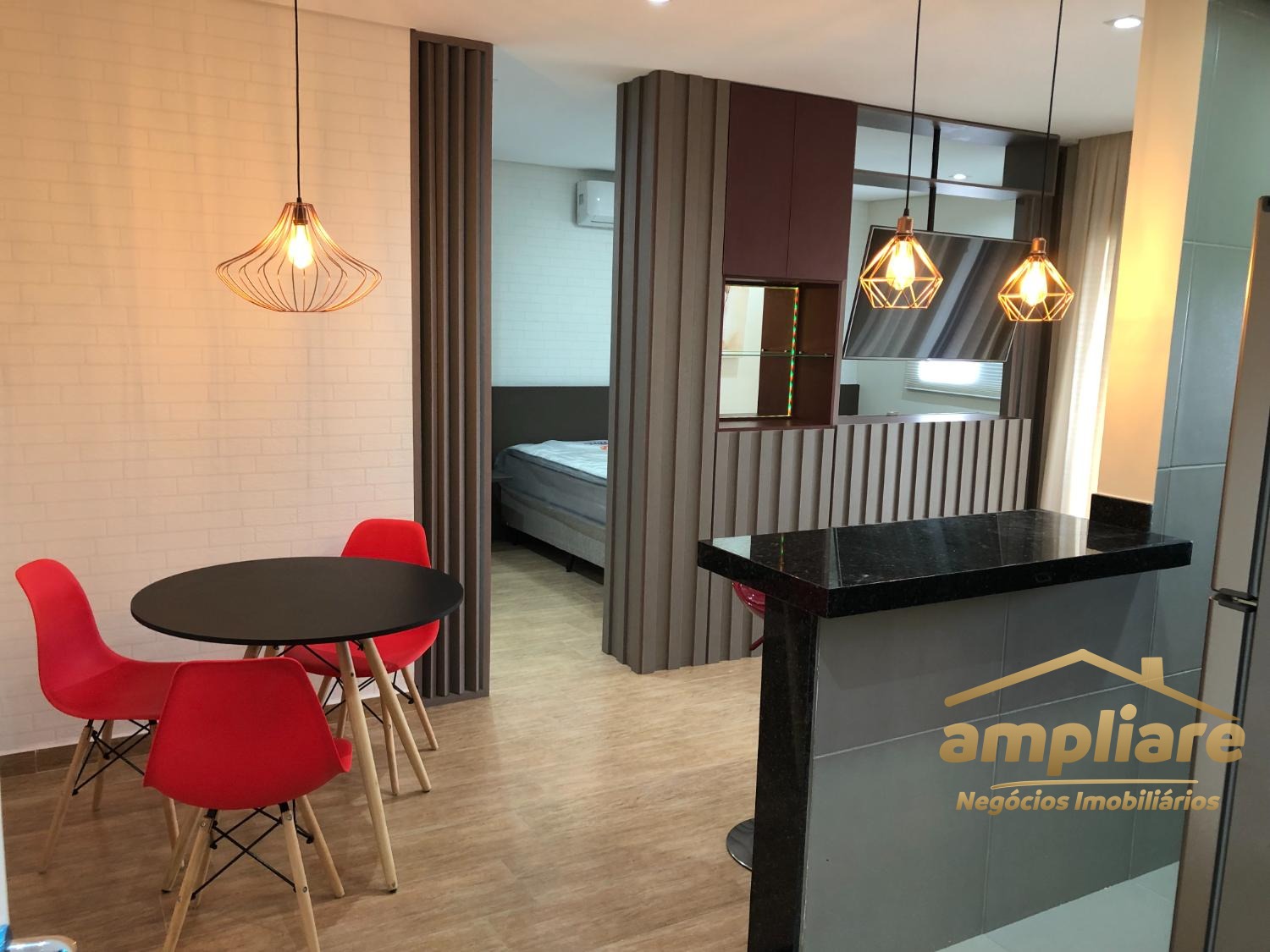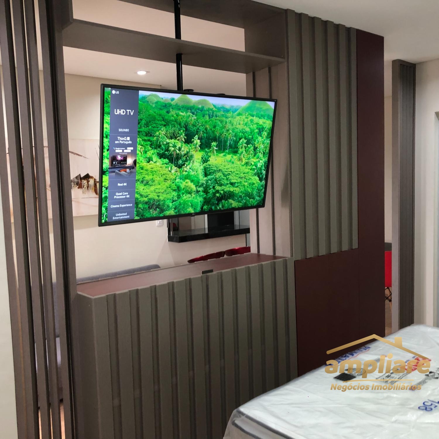 Situado no 14º andar, oferece uma vista privilegiada, com destaque para a varanda gourmet envidraçada, ideal para apreciar o pôr do sol. O ambiente é integrado, com sala elegante equipada com Smart TV, sofá, mesa e bar, além de dormitório com cama queen que garante conforto.