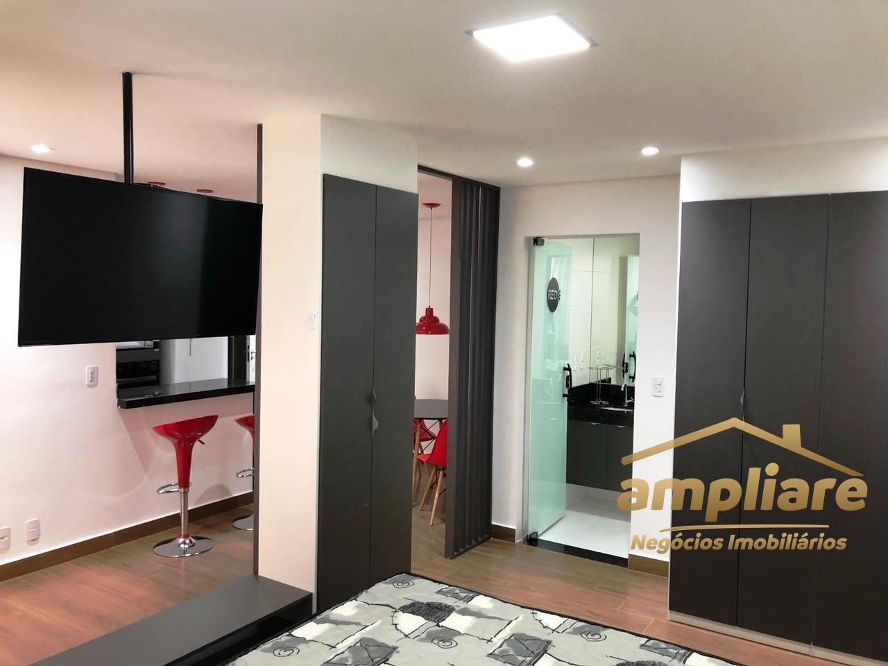 Studio com 44 m², moderno, funcional e totalmente equipado, ideal para quem busca conforto e praticidade no dia a dia.