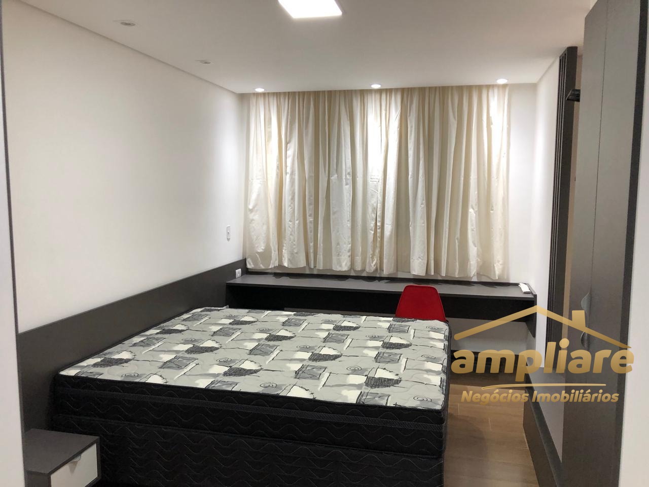 Oferece excelente nível de conforto, com ar-condicionado, cama box queen, além de sala integrada com Smart TV, sofá, mesa de jantar, bar iluminado e iluminação planejada em teto de gesso. Possui também bancada para escritório, ideal para home office.